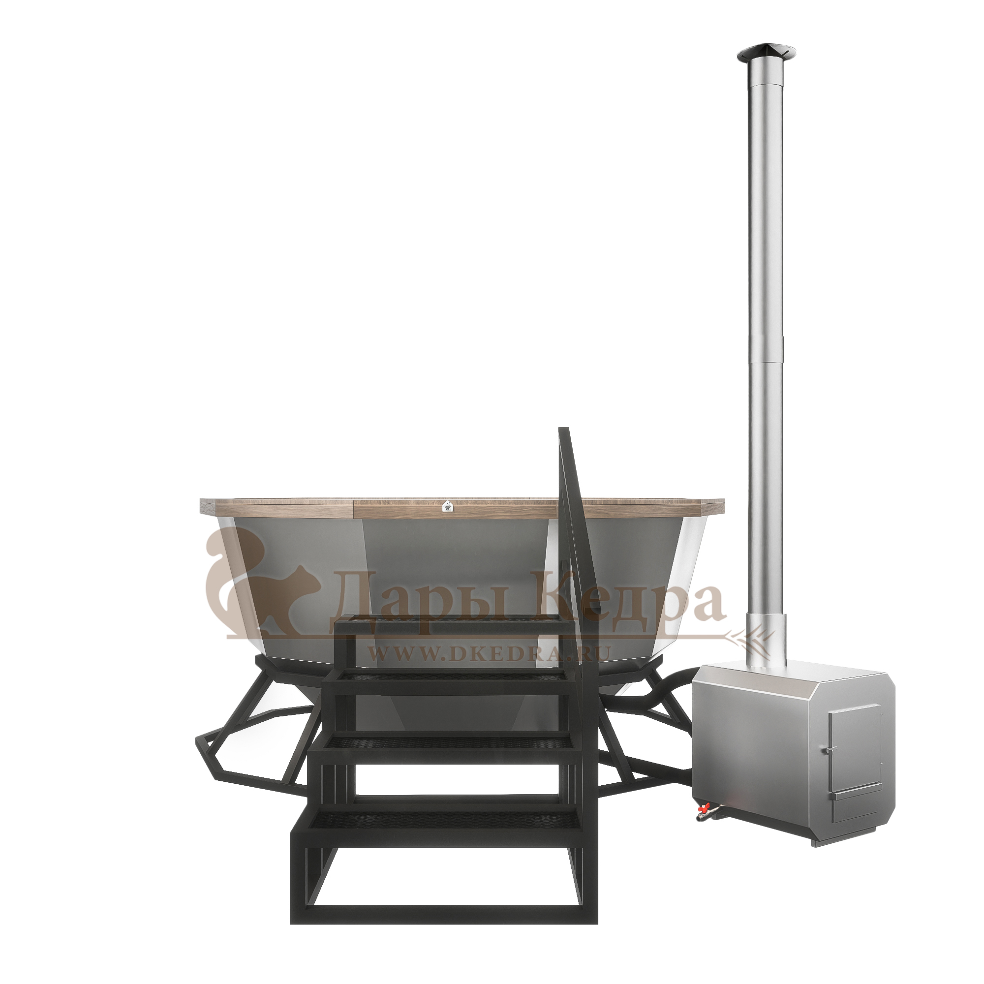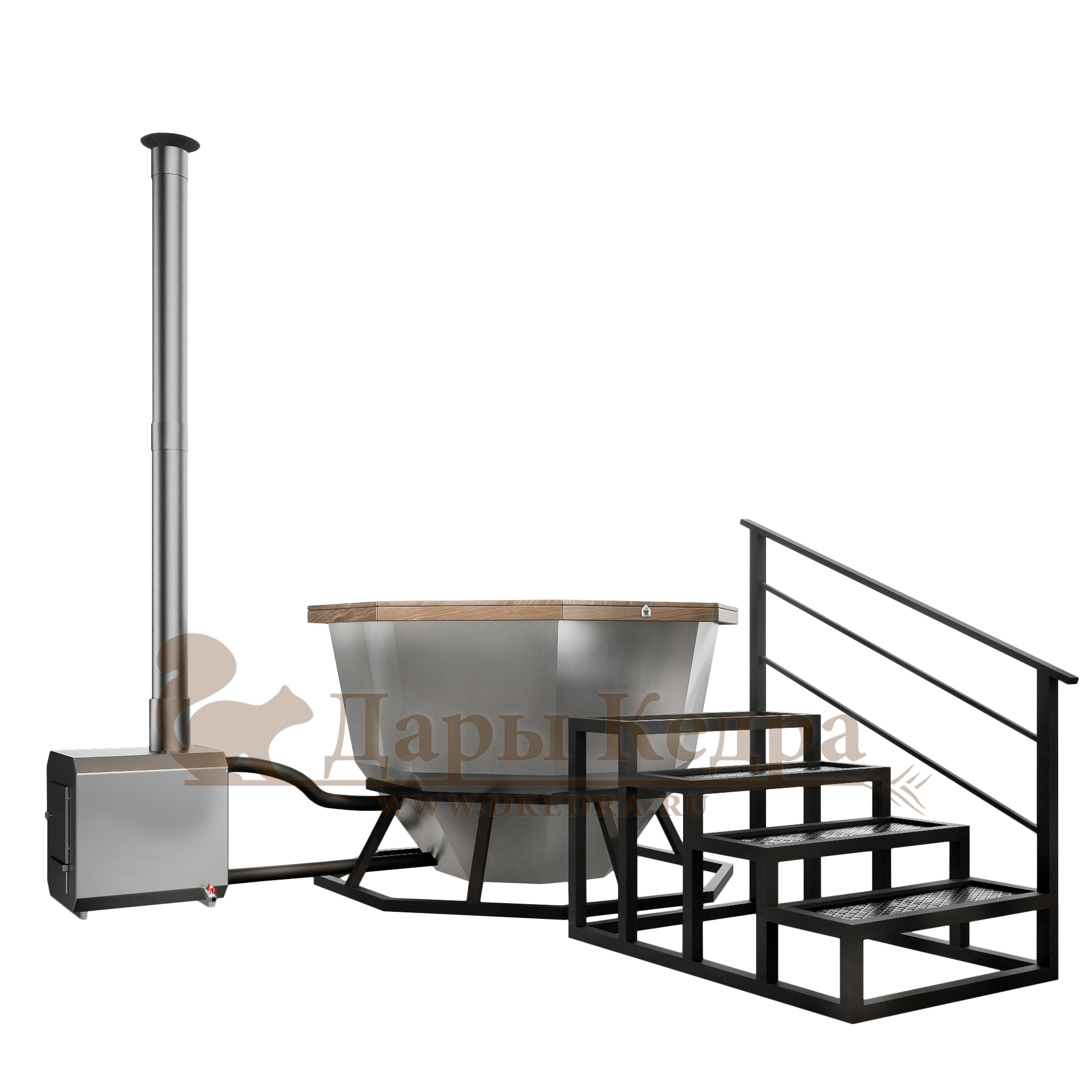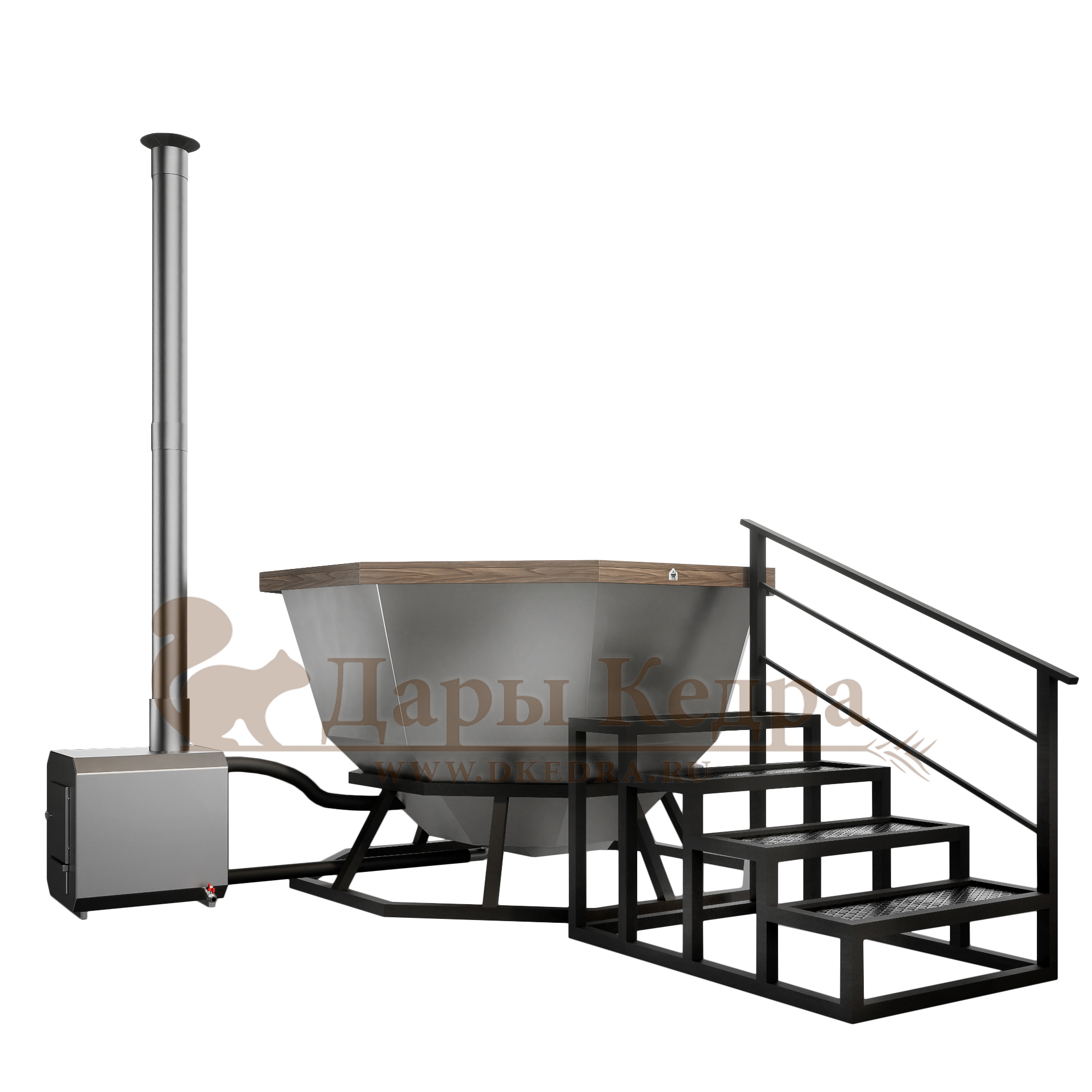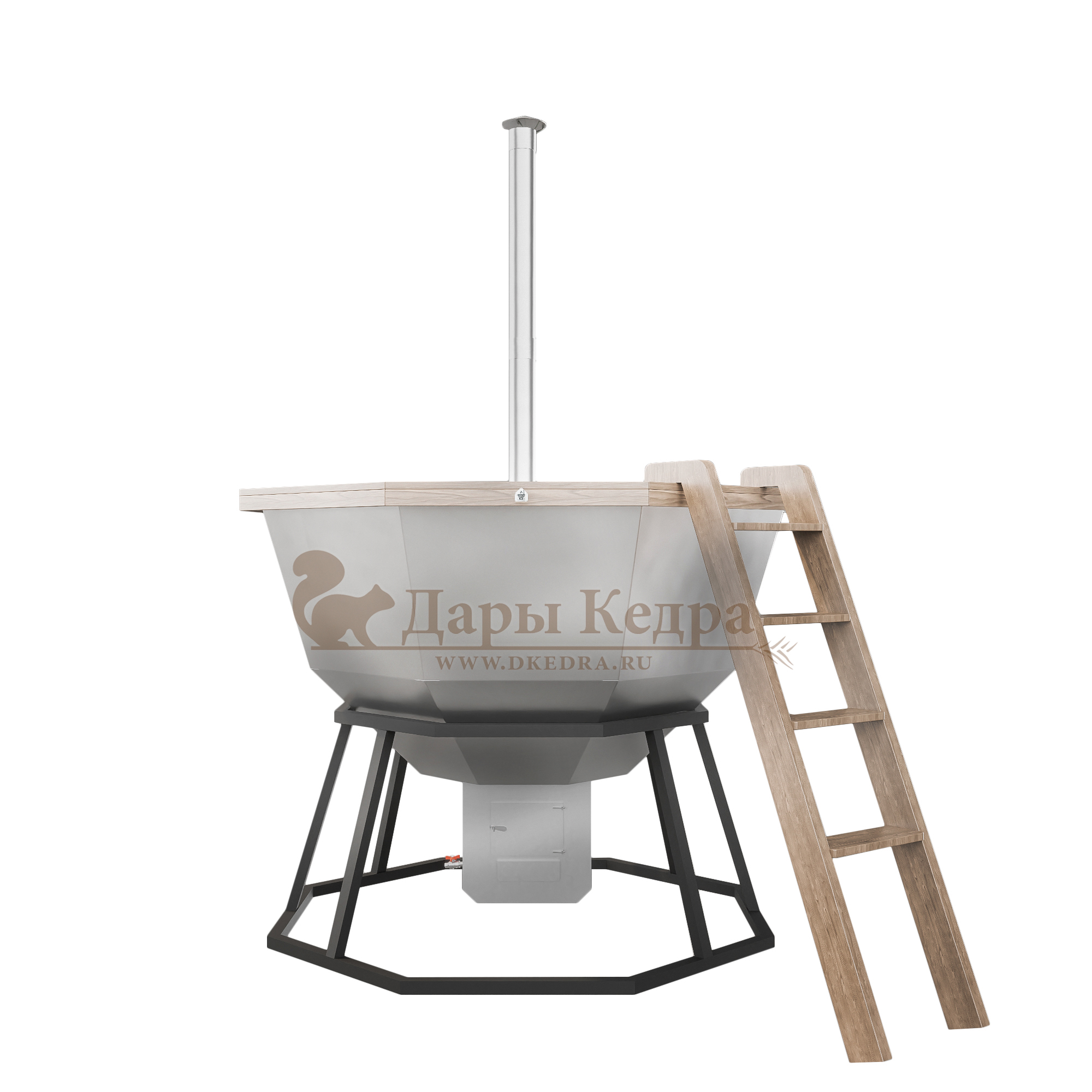 Банный чан из нержавеющей стали Ø-2350 на подставке с приставной печью