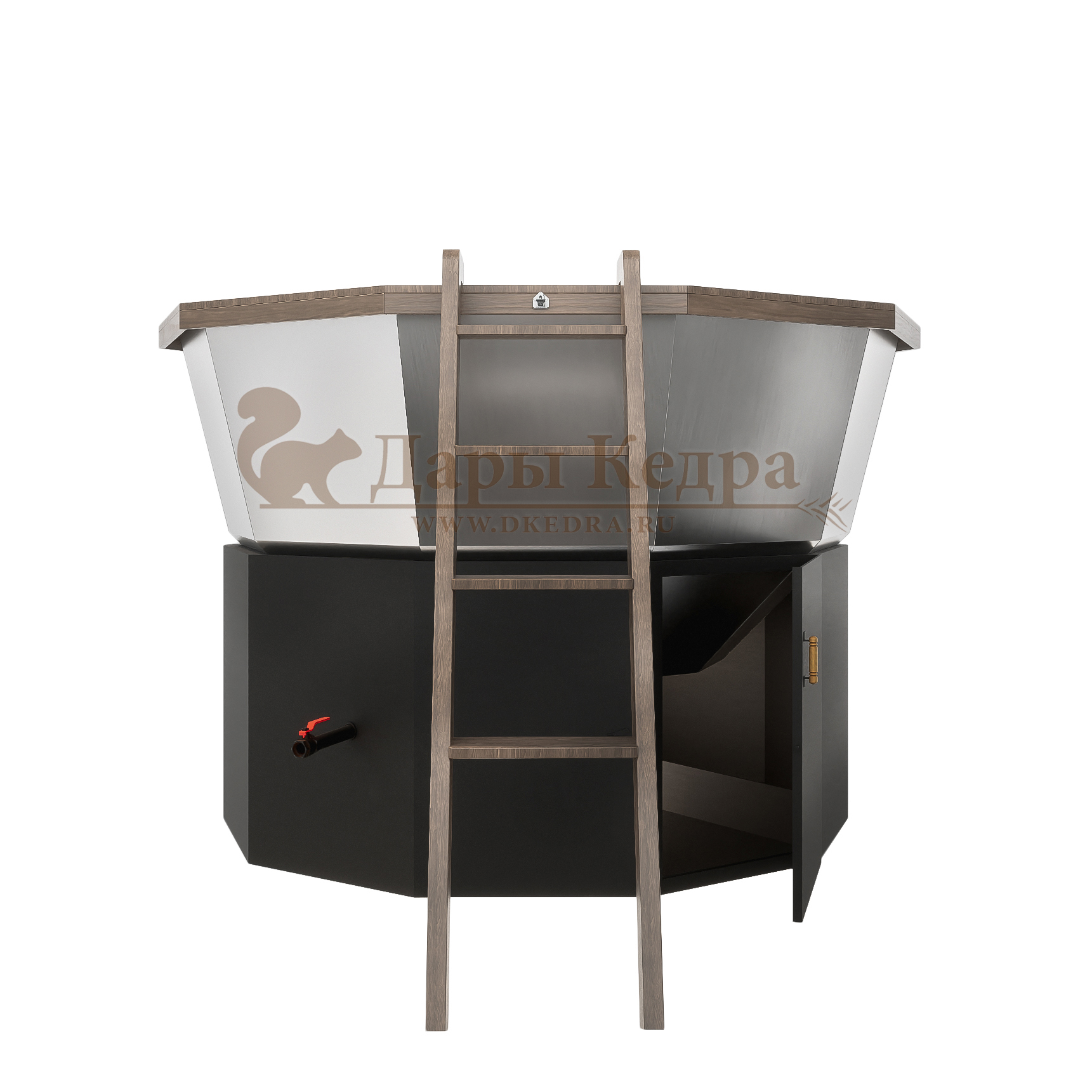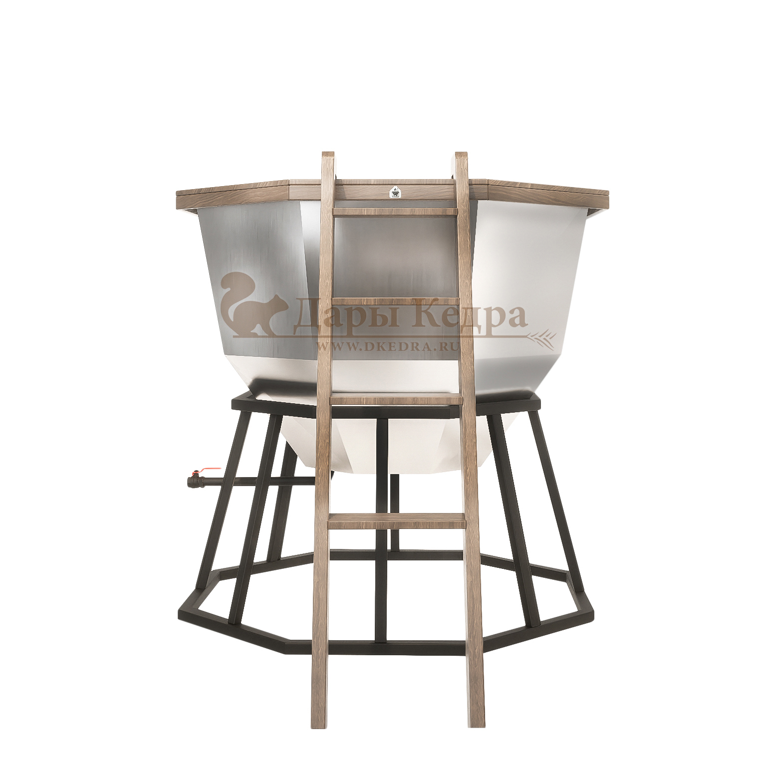 Конструкция устанавливается на прочную подставку, обеспечивающую устойчивость. Для удобства предусмотрена лестница, ведущая внутрь чана. Внутри оборудованы удобные сиденья, позволяющие комфортно расположиться. В зависимости от модели, вместимость составляет от 5 до 10 человек — отличный вариант для семьи или компании.