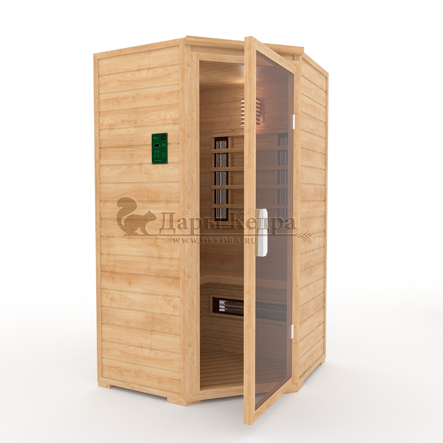 • Одноместная угловая инфракрасная сауна кабина из кедра с керамическими излучателями Это специально оборудованная кедровая кабина для прогрева тела человека сухим теплом. Воздух в таких парных не нагревается. Инфракрасные лучи воздействуют на тело, равномерно прогревая мышцы, суставы и органы. Керамические излучатели похожи на лампы, имеют высокую температуру нагрева, поэтому защищены противоожоговыми решетками. Тело человека в таких саунах нагревается интенсивнее. Работает кабина за счет электричества. Установка сауны в угол, позволяет рационально использовать пространство помещения. Подходит как для домашнего использования, так и для коммерции. Обращаем Ваше внимание что в стандартную комплектацию входит трапик для ног, но вы можете его заменить на цельный пол совершенно бесплатно! Целебная древесина кедра и инфракрасные лучи благотворно влияют на организм человека в целом. При регулярном использовании инфракрасной сауны укрепляется иммунитет, улучшается кровообращение и состояние кожи, выводятся токсины.