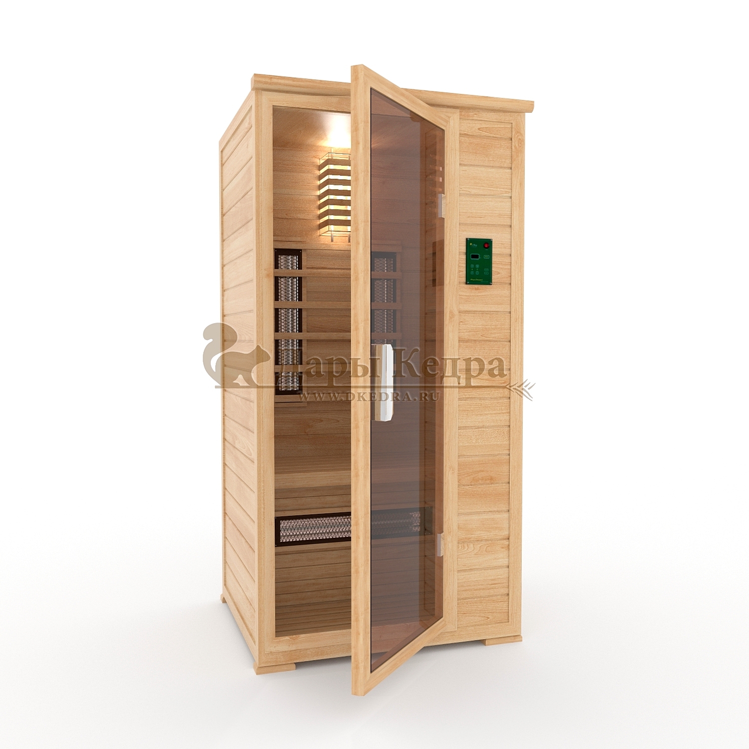 Инфракрасная сауна из кедра представляет собой кабинку с ик-нагревателями. Главное отличие такой кабины от финской парной или классической бани заключается в прогреве тела, а не воздуха. Внутренний прогрев тканей считается полезным и щадящим, за счет чего в инфракрасной кабине могут принимать лечебные процедуры даже дети и пожилые люди.
